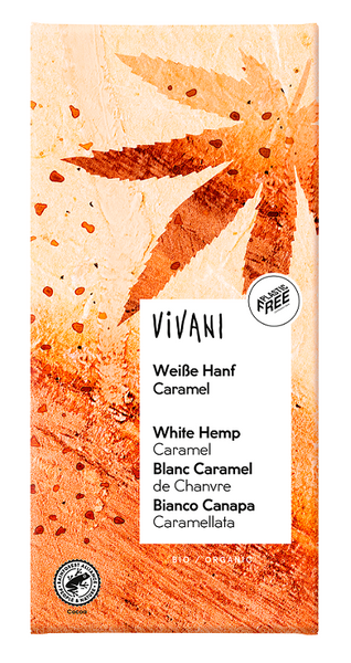 Czekolada biała z karmelizowanymi nasionami konopi i wanilią 80 g - Vivani (EKO)